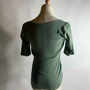 J. CREW Perfect Fit Square Neck Half Sleeve Knit Top Olive Womens Small