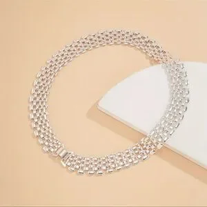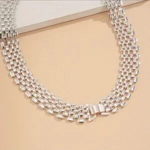 Exaggerated Hollow Chain Necklace Punk Hip-hop Style Silver Color Necklace