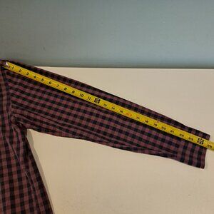 J. Crew Men's Small Tailored Fit Long Sleeve Button Down Shirt Style #51382. 100% cotton. Single chest pocket. Button down collar. Tailored fit. Purple and black plaid. Shirt is in excellent used condition. Please see photos for measurements and details.