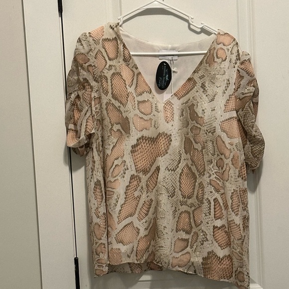 🐧3/$15 or 5/$20 - Adrienne V Neck Blouse Ivory Pink Snake Skin Print