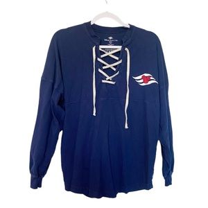 Disney Cruise Line Lace-Up Spirit Jersey Nautical Vacation Navy Blue/Red Sz XS