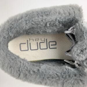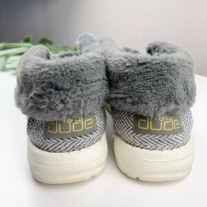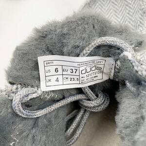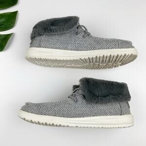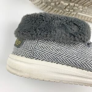 Hey Dude Britt Booties Shoes Grey Herringbone Wool Blend Faux Fur Women's 6