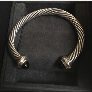 7mm black onyx David Yurman classic bracelet with 925 silver and gold, size medium.