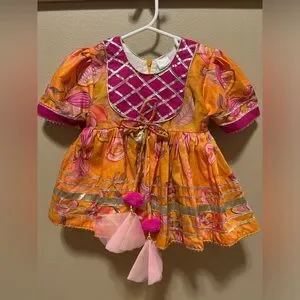 RARE Lil Glam - Orange Floral Printed & Lace Detailing Peplum Top - Size 1-2
