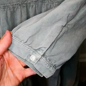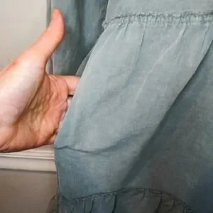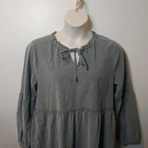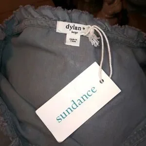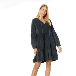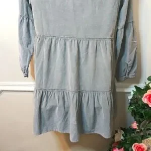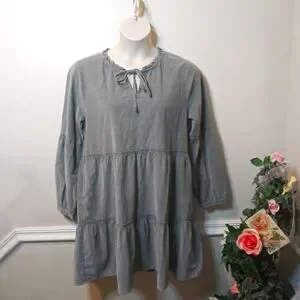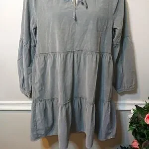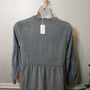 NWT Super cute boho style, long sleeved, tiered skirt mini dress with ruffled neckline with self tie, in a velvety soft sage green corduroy, from the brand Dylan sold by Sundance catalog. The corduroy is a thin wale, and is lighter weight, the lantern sleeves have button cuffs, and the tiered skirt has pockets. Dress can be worn late summer through early spring with sandals or booties/boots, depending on the look you want. Bust 21 1/2, waist 24, hips 26 1/2, length 36 inches. Please see all photos.