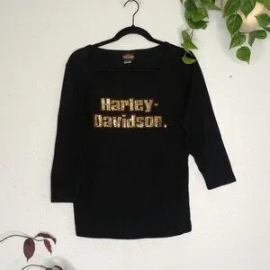 Harley Davidson Black Scoop Neck Top Sparkle XL