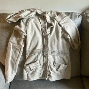 Billabong sweater- cream, small, with buttons and hood