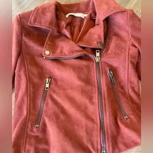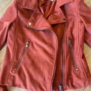 ASTR the Label Faux Suede Moto Jacket crop cropped motorcycle orange brown s rust full zip zipper