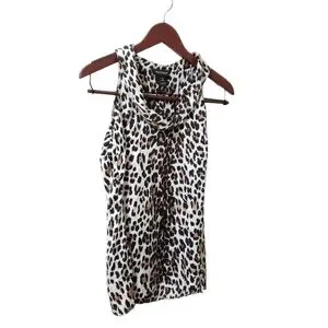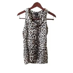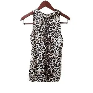 WHBM 100% Silk Leopard Print Sleeveless Blouse Sz XS Animal Print Mobwife
