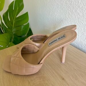 Steven Madden Quilted Pattern Square Toe Tan Beige Skinny Heel Trendy Style
