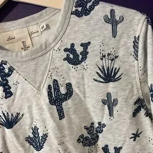 H&M sweatshirt with a cactus/succulent print. I believe it’s a men’s small but could be unisex. Excellent, pre-owned condition. Armpit to armpit is about 19”. Center back to bottom is about 27”. Smoke-free, Labrador-friendly home.