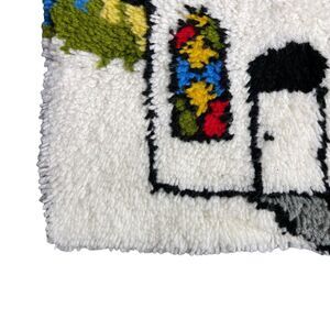 Pre-owned, overall in good condition. The yarn is fuzzy, which is typical of vintage finished latch hooks, and there is creasing on the back. This is near the bottom and I have shown this in the last photo.