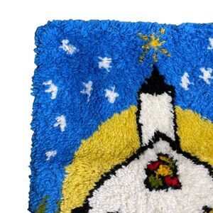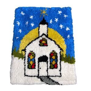Vintage Christmas Handmade Wall Hanging Church Stars Holiday Latch Hook Rug