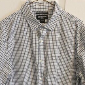 Preowned Claiborne long sleeve shirt in excellent condition, like new. Size large (slim cut), 100% cotton, white/blue tattersal pattern. Classic and stylish, suitable for work or for casual ocassions.