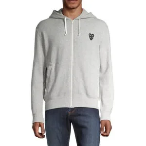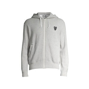COMME DES GARCONS CDG PLAY GRAY FULL ZIP HOODIE WITH BLACK HEART