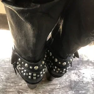 Kelly & Katie Becca Black Leather Studs Knee High Boots Size 8.5M are good condition, there is no stains, marked or damaged to these beautiful women’s knee boots.