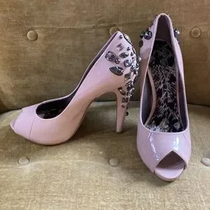 Nude patent leather with metal and glass stone’s decorations on the back , fun Sam Edelman heels. Not perfect,but cool enough for resale