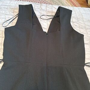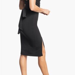 This Dress the Population size medium black dress is a midi-length dress featuring a figure-skimming silhouette with an alluring side slit. It has an attached tie that wraps around the waist. And it is lined.