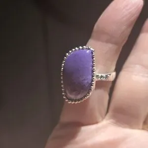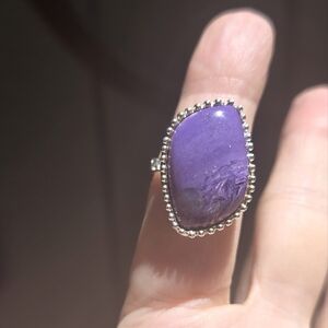 This is a STUNNING NEW ring fresh from my jewelers studio for my Natural Edge Kharma Collection 2024. This beautiful purple natural gemstone has a super cool "cloud" swirl. It's an incredible specimen set in solid 925 sterling silver with crisp topaz accent stones. This gemstone is so stunning that it doesn't really need anything added. It stands strong on uts own. Please ask questions and make an offer. I can't say yes if you don't ask!