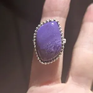 Charoite 14k & topaz GORGEOUS sterling ring sz7.5
