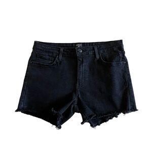 Just Black Ancil Frayed Hem Short in black has frayed hem and is perfect for warm weather. Zipper and button fly with 5 pockets. Excellent preowned condition.