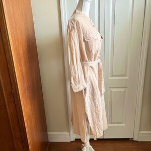 NWT ZARA soft pink tan color linen blend shirt dress. 3/4 sleeves. Side slits. With two chest flap pockets. It has a belt but can be worn loose too. Size L (OVERSIZED).