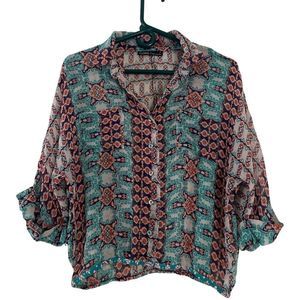 Gypsy 05 100% Silk Bohemian Blouse - Size Small