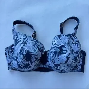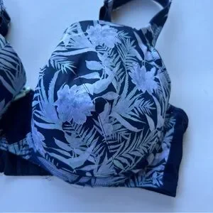 Cacique Blue Tropical Palm Floral Print Lightly Lined Balconette Bra