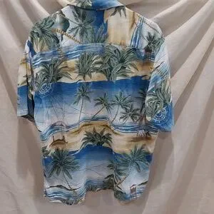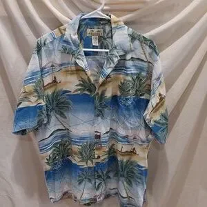 *Men's Kona Kai Hawaiian Print Beach Scene Cotton Blend Camp Shirt Size Medium