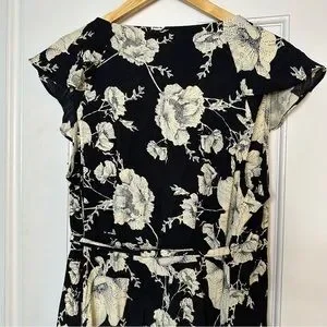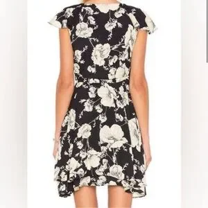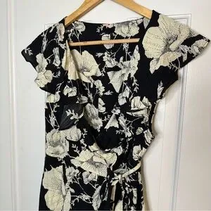FREE PEOPLE French Quarter Mini Wrap Dress Flutter Floral Black White Small