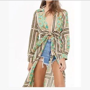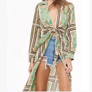 Baroque long maxi duster coat in a gorgeous SILKY fabric from Forever 21.