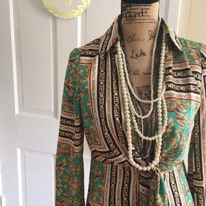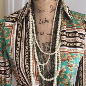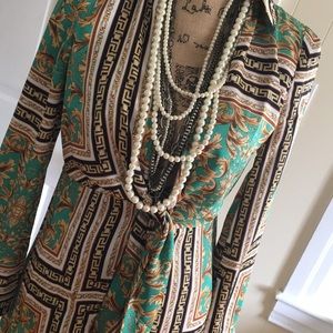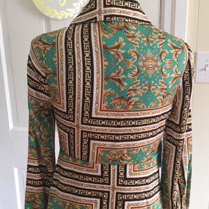 RARE • FORVER 21 • Gorgeous Baroque Maxi Coat Duster Green, Gold, Black & White