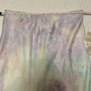 NWT Altar’d State Double Lined Tie Dye Satin Midi Skirt in Rainbow Multi Size XS. Dimensions in photos. Can also fit a Size S or M