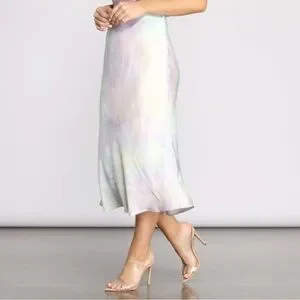 NWT Altar’d State Double Lined Tie Dye Satin Midi Skirt in Rainbow Multi Size XS