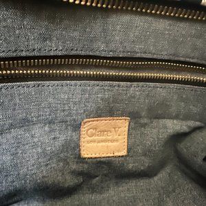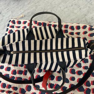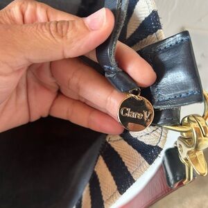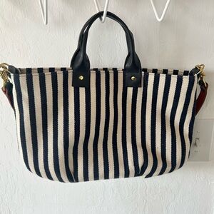 Clare V Canvas Messenger bag in navy and cream stripe.