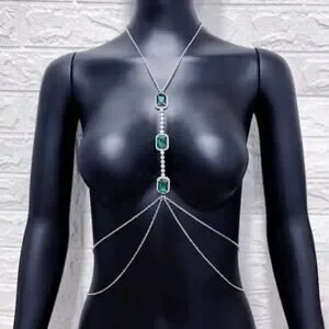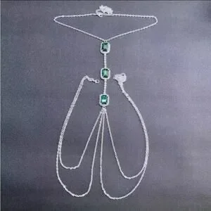 Silver and emerald zircon body chain.