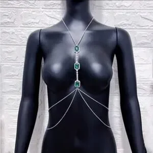 Emerald Silver Zircon Body Chain, Elegant, Classy, Minimalist, Punk