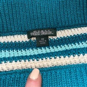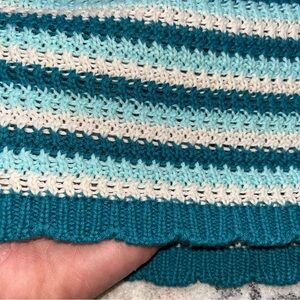 Beautiful island ocean colors with cream striped mini skirt. Crochet knot. Wild fable. Wide elastic waistband. Comfy and stretchy. Excellent condition.