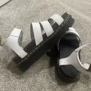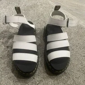 Airwair sandal with 1” platform. Iconic yellow stitching around platform. Ankle strap for secure fit. Size 7 (I typically wear and 8/8.5 so these run big). Brand Doc Martens. Gently worn. Great condition.