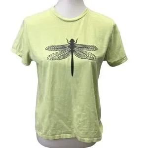 Hand Printed Upcycled Womens Medium Dragonfly 100% Cotton Crew Neck Tee