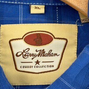 Larry Mahan Men's Blue Plaid Western Snap Shirt Size xl Long sleeve rodeo