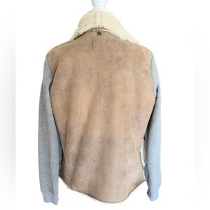 • Mixed media, Terry sleeves, faux leather main body, sherpa lined
