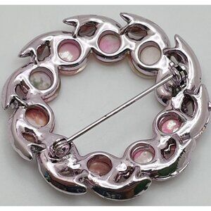 Vintage Faux Pink Pearl Wreath Brooch Pin Circles