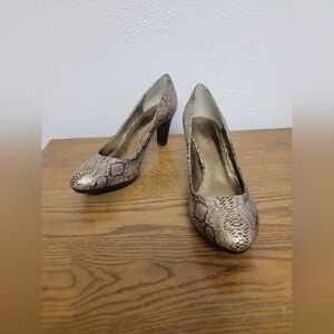 Anne Klein iFlex Gold Snake Skin Round Toed Pump 8.5M