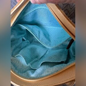 The Sak De Young Shoulder Bag in very good condition! Color is a buttery yellow. There are 2 slide pockets inside, a zippered pocket and an additional slide pocket on the outside of the bag. There’s a spot that I’ve marked in the last photo.