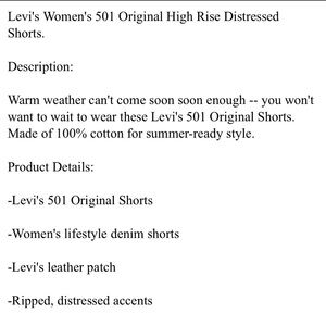 Levi’s premium 501 jean shorts size 33. Perfect used condition. gently worn. This style is no longer available. And it is a cult favorite for a reason! Sansome straggler. These shorts are so flattering! Only worn a few times as they no longer fit and I’m so sad. I’m having a hard time finding this style even secondhand! I would size up one size in these. I wore as a size 12