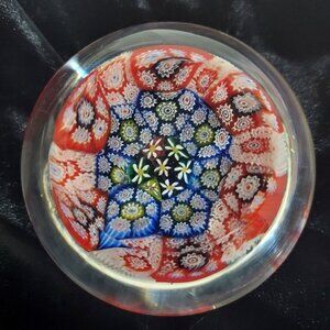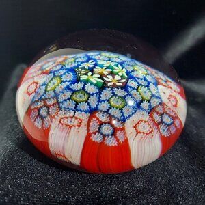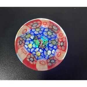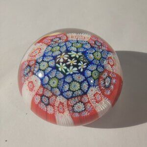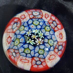 MURANO ART GLASS TINY MILLEFIORE RED WHITE BLUE DAISY FLORAL PAPERWEIGHT Vintage