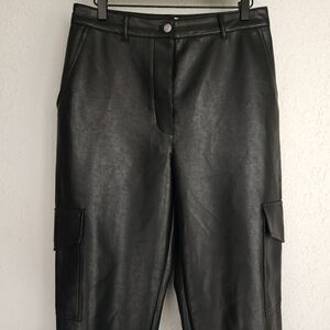 Aritzia Wilfred 10 Black Vegan Leather High Rise Buttonfly Modern Cargo Pant