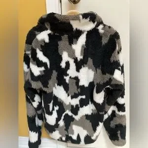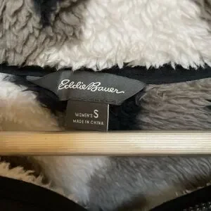 Eddie Bauer Women's Small Fireside Plush 1/4-Zip Fleece Black White & Grey. Very soft & comfortable.