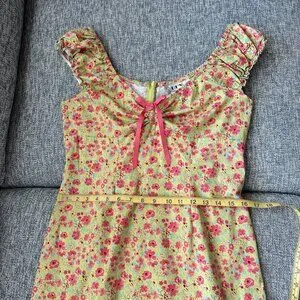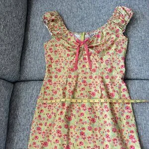 VTG D.B.Y. Mini Dress Yellow Pink Floral Ruffle Bow Accent Size 13/14